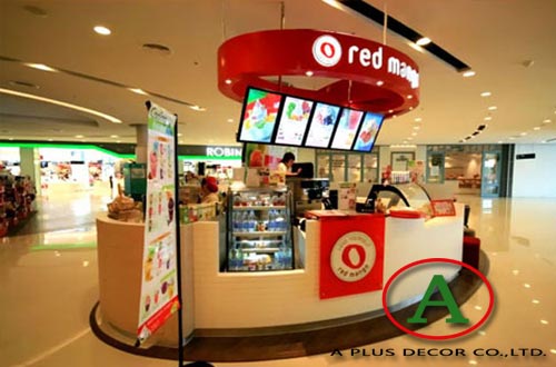 บริษัท เอ พลัส เดคคอร์ จำกัด เป็นผู้ตกแต่งภายในทั้งหมด ขอแสดงความยินดีกับร้านไอศครีม Red Mango เป็นร้านไอศครีมออกแบบแนวสมัยใหม่ เน้นความโปรง ดูแล้วนั่งสบาย โดยเปิดเพิ่มอีก 2 สาขา red mango สาขา Central ชลบุรี และ พัทยา
